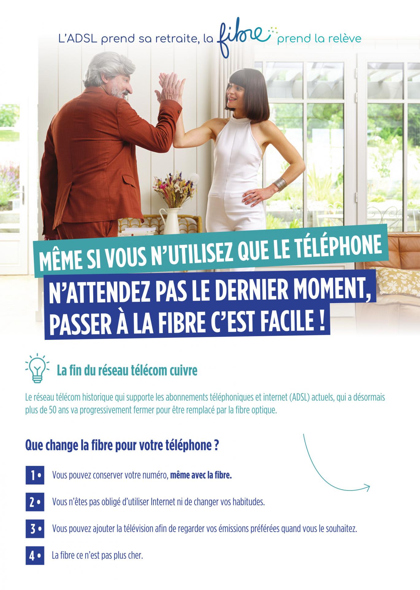 Cette démarche est indispensable, même si vous n'utilisez que le téléphone fixe, car le signal passera désormais par la fibre. En effectuant ce changement aujourd'hui, vous évitez toute interruption de service et vous vous assurez de conserver votre moyen de communication en toute sérénité.